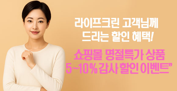 라이프크린을 이용해주신 고객님만을 위한 특별 할인 상품들을 엄선하여 준비했습니다. 합리적인 가격으로 만나보실 수 있는 이 상품들은 맨 아래 "할인 상품 쇼핑하기"를 통해 네이버 쇼핑에서 구매하실 수 있습니다.